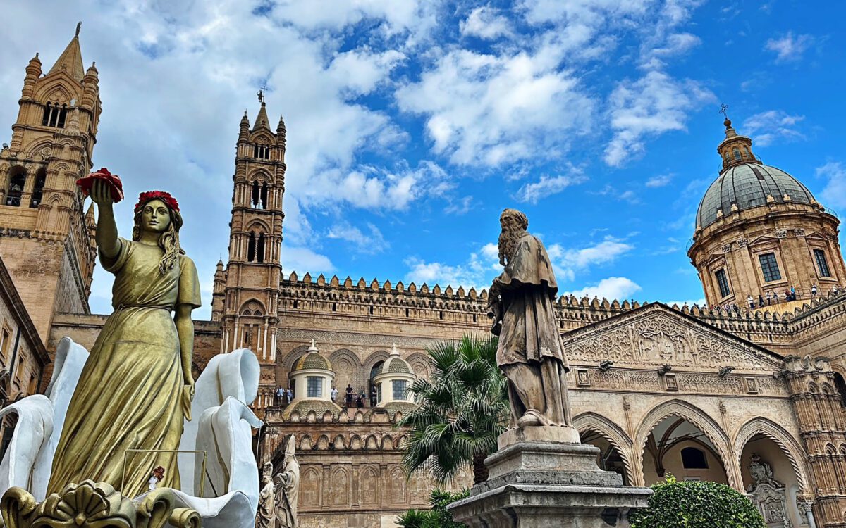 Il nostro tour di Palermo inizia da Piazza del Parlamento, dominata dal Palazzo dei Normanni, antica reggia e oggi sede dell’Assemblea Regionale Siciliana. Al suo interno la Cappella Palatina, un tesoro di mosaici dorati che sembra fluttuare nella luce. Attraversando il lussureggiante palmeto di Piazza Bonanno, si giunge alla maestosa Cattedrale, un’architettura stratificata dove, nel silenzio delle navate, riposano le spoglie degli imperatori svevi, tra cui il leggendario Federico II.